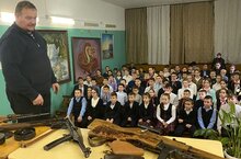 Лектор рассказ о видах оружия, с которыми воевали во время Великой Отечественной Войны, также о факте, что в России до сих пор в большом количестве продается охолощенное оружие.