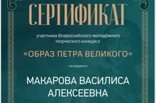 Обучащиеся нашей школы Макарова Василиса и Пестова Вероника были награждены сертификатами за участие в конкурсе Образ Петра Великого 14.10.2022