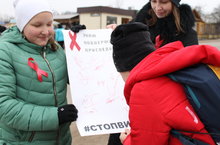 Акцию под названием "Я знаю. Я поддерживаю. Я присоединяюсь" в рамках Всероссийской акции "СТОП ВИЧ/СПИД" провели участники школьного отряда "SaMoSтоятельные дети. 05.12.2017