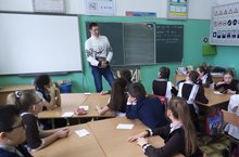 2 апреля состоялась встреча студентки 2 курса Академии спорта и туризма ,Мишухиной Анастасии Андреевны с учащимися начальных классов. Она рассказала детям о здоровом питании, провела игру "Полезно-вредно" , побеседовала с ребятами о культуре приёма пищи и влиянии различных продуктов на организм человека. 03.04.2019