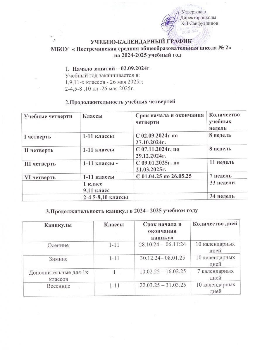 Годовой календарный учебный график на 2023-2024 учебный год