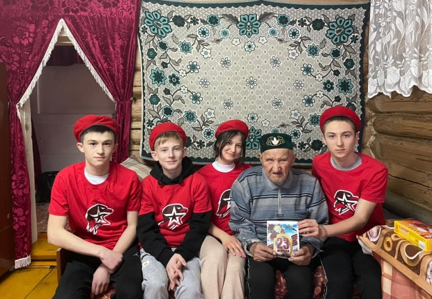 Юнармейцы поздравили ветерана ВОВ Гимадиева Х.М. с днем защитника Отечества