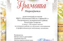 Муниципальное бюджетное общеобразовательное учреждение «Шалинская средняя общеобразовательная школа имени Сафина Файзрахмана Ахметзяновича» Пестречинского муниципального района Республики Татарстан/Татарстан Республикасы Питрәч муниципаль районы муниципаль бюджет гомүми белем бирү учреждениесе "Сафин Фәйзрахман Әхмәтҗан улы исемендәге Шәле урта гомүми белем бирү мәктәбе"