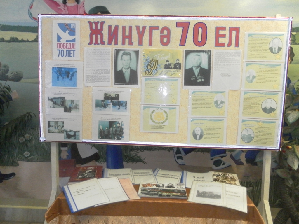 17 февраль көнне 7 нче сыйныф укучылары Җиңүнең 70 еллыгы уңаеннан "Сугыш урлаган балачак" дип исемләнгән ачык чара күрсәтте.(сыйныф җитәкчесе җәмгыять белеме һәм тарих укытучысы Мухутдинова Р.М.) Чарада сугыш чоры балалары катнашты.Алар үзләренең сугыш чорындагы балачакларын яшь аралаш искә алдылар.