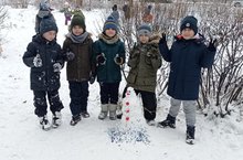 Ясадык ике кулын: - дип көлешә, көлешә 1а сыйныф укучылары да үзләренең беренче кар бабайларын ясадылар.