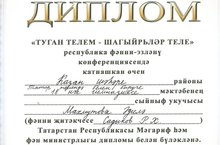 9нчы сыйныф укучысы Махмутова Әдилә Республика күләмендә "Туган телем - шагыйрьләр теле" бәйгесендә катнашып зур уңышка иреште һәм Татарстан Республикасы Мәгариф һәм фән министрлыгы дипломы белән бүләкләнде.