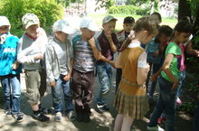 Сегодня в лагере день следопыта. После завтрака ребятам объявили, что их воспитатели пропали, и дали задание найти их в рамках спортивно-развлекательной игры «Найди вожатого». Сначала ребята бегали по станциям искали записки-подсказки, когда все задания были выполнены, они получили подсказку, где искать воспитателей. Учителя были найдены, затем ребята отправились в подвижные игры на свежем воздухе.