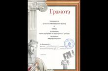 Некоммерческое партнерство содействия распространению энциклопедических знаний "Викимедиа РУ" г.Москвы проводило конкурс "Марафон Рунета". Ученик 11 класса Миннемуллин Булат участвовал в конкурсе и был награжден ГРАМОТОЙ за победу в номинации "Статьи о Рунете иностранных языках". ПОЗДРАВЛЯЕМ! МОЛОДЕЦ!