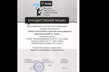 МБОУ «Гимназия №18» награждена БЛАГОДАРСТВЕННЫМ ПИСЬМОМ ООО «Центр информационных технологий в образовании» за активное участие в смене «Программирование на С# (17-23.11.2012) в рамках совместного с IТ – park республиканского проекта «IT – Jump»
