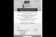 Гимназия №18 награждена Благодарственным письмом Центра информационных технологий в образовании за активное участие в смене по Web - программированию (22-28.09.2012) в рамках совместного с IT-park г.Казань республиканского проекта "IT-Jump"