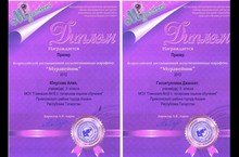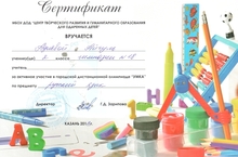 Учащиеся 2А класса Галиуллина Диана, Адиева Айгуль (учитель Г.Р.Насибуллина) и ученица 4А класса Алеева Алина получили сертификаты МБОУ ДОД «Центр творческого развития и гуманитарного образования для одаренных детей» за активное участие в городской дистанционной олимпиаде «УМКА». Молодцы!!!