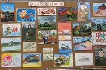 Гимназиядә сынлы сәнгать укытучысы Равилә Хәйдәровна җитәкчелегендә "Бөек Җиңү көне" дип исемләнгән рәсем күргәзмәсе оештырылды.