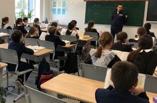 Бүген гимназиябезгә УФСИН инспекторы Музафаров Илшат Шамилевич югары сыйныф укучылары белән очрашуга килде. Илшат Шамилевич шушы юнәлештә белем бирә торган Россия югары уку йортлары белән таныштырды, хезмәте турында сөйләп китте. -