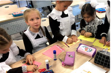 Гимназиябезнең активистлары озайтылган көн төркемнәренә йөрүче укучылар белән открытка ясау буенча мастер - класс оештырдылар. Укучылар яңа төрле ысуллар кулланып, әти- әниләренә открыткалар ясадылар