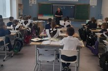 21 нче март көнне инспектор Гиниатуллина М. П.1- 4 нче сыйныф укучылары белән юл йөрү кагыйдәләре буенча сөйләшү үткәрде.