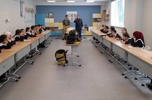 Бүген 3Б сыйныфы укучыларының "Тормыш иминлеге нигезләре" буенча МЧС хезмәткәрләре Гафаров Гумар Наилевич, Сираҗетдинов Артур Дамирович, полиция майорлары Мәннәпов Рөстәм Дилшатович һәм Мәннәпова Гүзәл Муллануровна белән очрашулары булып узды. Чакырылган кунаклар үзләренең һөнәрләре белән таныштырдылар, укучыларның сорауларына җавап бирделәр, куркынычсызлык кагыйдәләре турында әңгәмә үткәрделәр. Әлеге очрашуны оештырган өчен сыйныф җитәкчесе Гафарова Илсияр Илгизовнага рәхмәтебезне белдерәбез!