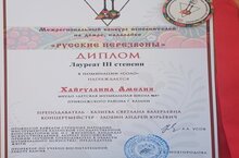 Коллектив "Шестиструнный квартет", в состав которого вошли Бондаренко Юлия, Муфтахуддинова София, Кислухин Иван и Фахретдинов Аскар, получил звание лауреата II степени.