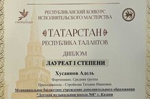 Хусаинова Аделя с победой в конкурсе «Татарстан - республика талантов»! (преподаватель Татьяна Ивановна Стройкова); Садыкова Камиля - стал Лауреатом 2 степени конкурса «Татарстан - республика талантов» (преподаватель - Плотников Сергей Николаевич); Янихина Анна - лауреат 3 степени (преподаватель Чеботарева Анастасия Владимировна).