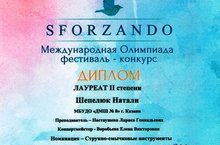 Международная Олимпиада фестиваль-конкурс "Сфорцандо" Шепелюк Натали ДИПЛОМ Лауреата II степени.