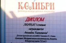 Поздравляем ансамбль "Балалаечка" (рук. Бачурова Н.Н.) - лауреат 1 степени международного фестиваля-конкурса детского творчества "Колибри".