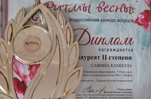 Поздравляем первоклассников: Сафину Камиллу (Лауреат II степени) и Володина Захара (Лауреат I степени) с удачным дебютом на Всероссийском конкурсе «Ритмы весны»!