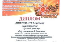 VI Международный конкурс-фестиваль детско-юношеского и молодежного творчества "Виктория" ДИПЛОМ Дипломанта I степени награжден Духовой оркестр ДМШ №8 "Музыкальный десант"