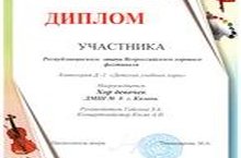 Хор девочек - ДИПЛОМ Участника Республиканского этапа Всероссийского хорового фестиваля Категория Д-2 Детские учебные хоры.