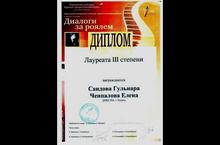Награжден ансамбль Тимофеев Александр и Лаврухина Анна ДИПЛОМАНТ I степени на Ежегодном международном фестивале-конкурсе детского и юношеского творчества "Хрустальное сердце мира" в номинации инструментальное исполнительство (фортепиано) дуэт.