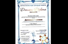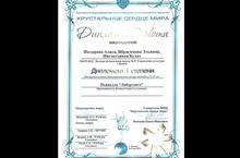 Награждена Калимуллина Алия ДИПЛОМАНТ I степени на Ежегодном международном фестивале-конкурсе детского и юношеского творчества "Хрустальное сердце мира" в номинации инструментальное исполнительство (фортепиано)