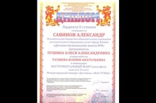 Награждени ДИПЛОМОМ Лауреата II степени Савинов Александр на Международном конкурсе-фестивале "Жар Птица" в номинации Инструментальный жанр. Саксофон.Соло.