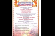Награжден ДИПЛОМОМ Лауреата I степени Ансамбль "Сюрприз" Гарифуллина Камилла, Евстафьева Ксения,Шайхутдинова Лия на Международном конкурсе-фестивале "Жар Птица" в номинации Инструментальный жанр. Трио.Домра.