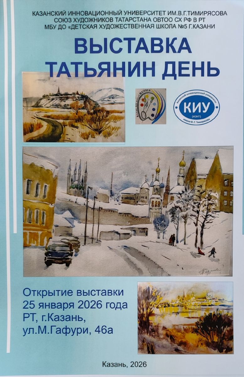 25 января 2026 г. по адресу ул. Мазита Гафури, 46а состоится открытие выставки работ профессионального художника Татьяна Бердниковой, посвященное Татьянину дню и дню студентов.