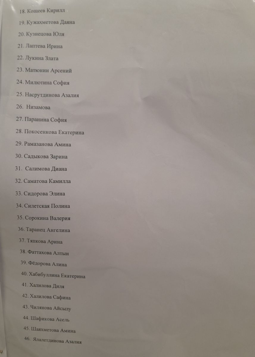 Списки поступивших в 1 класс. 2 лист
