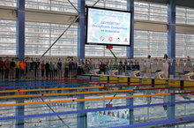 Спортивное мероприятие 16.02.201716 февраля 2017г. Дворец Водных видов спорта. Группа спортсменов 2007г.рождения, тренер-преподаватель Солдаткина Т.А. на мероприятии по случаю приезда мэра г.Парижа.
