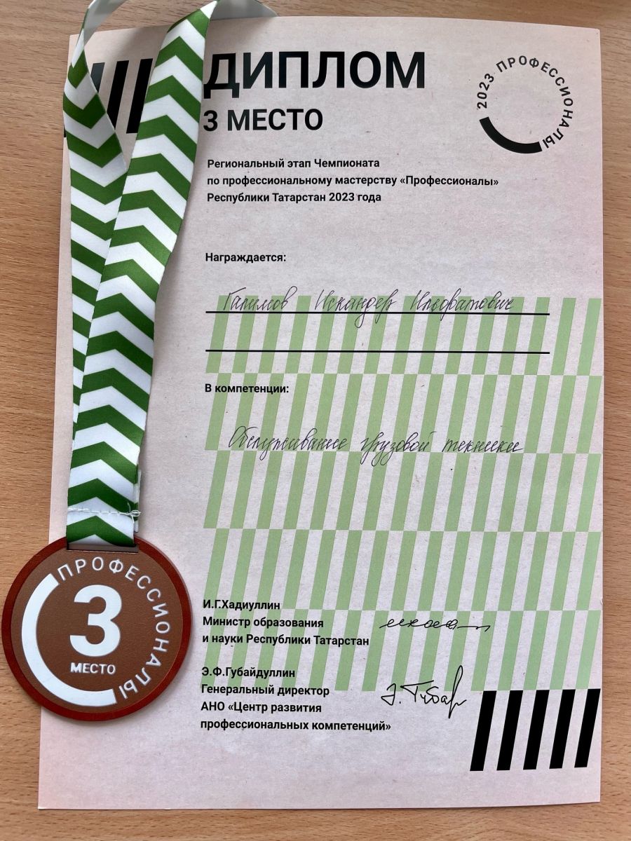 Поздравляем Галимова Искандера, студента группы ТОД 219-3 с 3-м местом в Региональном этапе Чемпионата по профессиональному мастерству «Профессионалы» по компетенции «Обслуживание грузовой техники