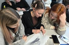 Далее студенты были разделены на команды для выполнения творческого командного задания. Перед ребятами стояла задача нарисовать общую эмблему команды, опираясь на озвученные факты каждого члена команды.
