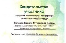 Наши лицеисты, ученики математического класса Салахов Карим и Музафаров Карим, под руководством Салаховой Л.И. достойно выступили на со своим экологическим проектом на научно-исследовательсой конференции "Мой город".Поздравляем!Желаем дальнейших успехов!