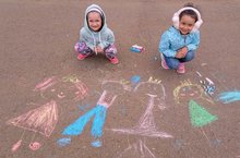 Рисунки на асфальте неотъемлемая часть праздника День защиты детей. Хорошее настроение, разноцветные мелки... И вот уже летят по асфальту бабочки, растут деревья и цветы, светит солнце, появляются дома...Нет границ детскому творчеству!