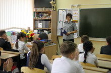 16.09.14. В рамках республиканской природоохранной эколого-образовательной акции в гимназии прошли «Уроки чистоты». В 5б классе занятие провела сотрудник Министерства экологии Каримуллина Алсу Илизаровна, выпускница гимназии № 6.