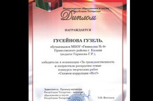 Поздравляем Гусейнову Гузель, ученицу 11 Б класса, победителя в номинации «За гражданственность и патриотизм раскрытия темы» конкурса творческих работ "Скажем коррупции «Нет»"