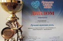 Дмитрий Петров получил Диплом за лучшую мужскую роль на международном конкурсе Хрустальное сердце мира.