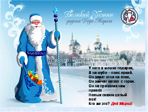 Нашему Деду Морозу уже более 100 лет. В отличие от Санта Клауса русский Дедушка Мороз ходит в длинной шубе, валенках и с посохом. Он предпочитает передвигаться пешком, по воздуху, или на санях, запряженных резвой тройкой лошадей. Его постоянная спутница – внучка Снегурочка. Дед Мороз играет с детьми в игру «Заморожу» и прячет в новогоднюю ночь подарки под елкой.