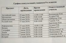 График консультаций 9 классы 26.05.2019