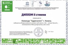 Поздравляем команду 7б класса «Адреналин» с дипломом II степени Всероссийского сетевого веб-квеста «Лес - легкие Земли!», посвящённого Международному дню лесов, организованного в рамках деятельности Сети Асоциированных школ ЮНЕСКО. Руководитель команды - М.И.Бартязова. Желаем дальнейших успехов!