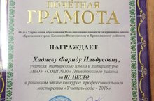 Поздравляем Хадиеву Фариду Ильдусовну, учителя татарского языка и литературы, занявшую 3 место в районном этапе конкурса профессионального мастерства "Учитель года - 2019"! Гордимся!