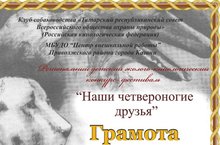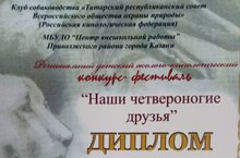 Поздравляем Гарифуллина Рияза, Акмалову Самиру, Гибадуллину Камилу с победой в номинации "Творческий подход" в Региональном детском эколого-кинологическом конкурсе-фестивале "Наши четвероногие друзья"! Желаем дальнейших успехов!