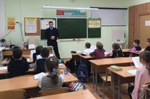 Старший инспектор И. И. Хайруллин ОГИБДД УМВД России по Приволжскому и Вахитовскому районам г. Казани провел беседу о правилах дорожного движения в 3 б классе. -