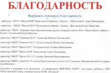 Коллектив школы № 68 прислал письмо со словами благодарности ученикам, учителям и родителям нашей школы за организацию ЯРМАРКИ ДОБРА. Все средства, заработанные на ярмарке, были перечислены ученице 2 класса с ОВЗ школы №68 Гайнутдиновой Гузель.
