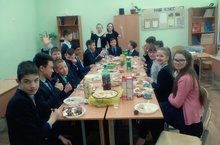 Сегодня ученки 7 А класса в дружной компании провели праздник, посвященный 23 февраля и 8 марта.