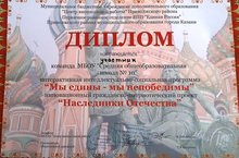27 сентября 2017 года учащиеся 8-х классов приняли активное участие в инновационном гражданско-патриотическом проекте "Наследники Отечества". В рамках этого проекта была проведена интерактивная интеллектуально-социальная программа "Мы едины-мы непобедимы" в "Центре внешкольной работы" Приволжского района г. Казани при участии первичного районного отделения партии "Единая Россия".
